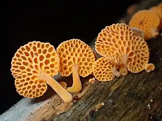 - ↑ Favolaschia calocera. Abgerufen am 11. Juni 2024 (französisch).