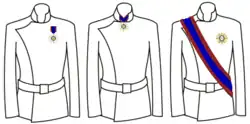 Das Großkreuz wurde an einer Schärpe von der rechten Schulter zur linken Seite getragen, dazu ein Bruststern. Kommandeure trugen das Insigne als Halsorden und die Ritter im Knopfloch.