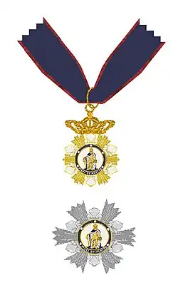 Zur Kleidung wurde der Orden in anderer Art getragen. Die Großkreuzklasse trug den Orden um den Hals an einer goldenen Ordenskette. Die Kettenglieder wechselten zwischen bourbonischen Lilien und gekreuzten Fahnen. Auf den Fahnen wurden abwechselnd die Königskrone, ein Turm und der Buchstaben F gezeigt.