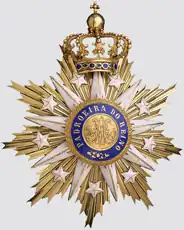 Ein weiß emaillierter neunspitziger Stern liegt auf einer goldenen neunflammigen Sonne auf. Zwischen den Sternspitzen befinden sich acht kleine fünfspitzige weiße Sterne. Auf dem goldenen Mittelschild stehen die verschlungenen Buchstaben M A (Marienmonogramm), umgeben von einem blau emaillierten Reif mit goldener Einfassung, die die Ordensdevise PADROEIRA DO REINO (Patronin des Königreichs) als Umschrift trägt. Über der Ordensdekoration befindet sich die goldene Königskrone mit dem Tragering.