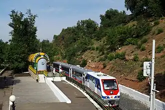 ![]() Diesellokomotive TU10-021 mit einem Personenzug | |