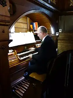 Zum Organistendienst in der Rolle eines Kirchenmusikers gehören neben dem Literaturspiel und der Improvisation auch Grundkenntnisse im Orgelbau, z. B. das Nachstimmen einzelner Pfeifen, insbesondere von Zungenregistern. Organisten müssen weiterhin über Kenntnisse unter anderem in den Bereichen der Orgelmusik, der Musiktheorie, der Liturgik, der Hymnologie und der Kirchenmusikgeschichte verfügen.[1]