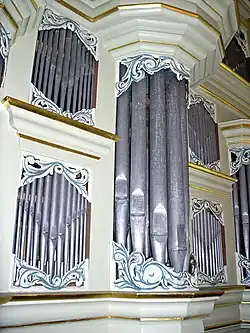 In der zweiten Hälfte des 16. Jahrhunderts erhielt die Kirche an der Nordseite die erste einmanualige Orgel mit 13 Registern und zwei Transmissionen für den Untersatz 16′ und das Cornet 2′ im ansonsten angehängten Pedal. Wie sich aus den noch erhaltenen Bleipfeifen ablesen lässt, stammte der unbekannte Orgelbauer vermutlich aus Hamburg oder Buxtehude.[1] Der ursprüngliche Umfang der Klaviaturen des Renaissance-Instruments umfasste FGA-g2a2. Aus dem Jahr 1565 ist die Jahresrechnung eines Kalkanten überliefert, der für das Bälgetreten („vor belgenn tho treden“) entlohnt wurde.[2]
