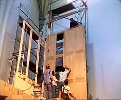 Aufbau der neuen OrgelEinsetzen der Orgelpfeifen in das fertiggestellte GehäuseBlick auf die Orgel von der Empore