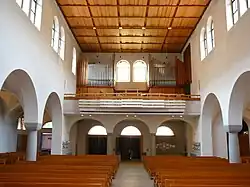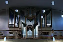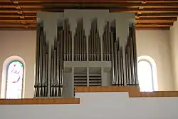 III/P | 36 | 1966 durch Kuhn auf 42 Register erweitert. 2005 neuer elektrischer Spieltisch von Mathis Orgelbau (Näfels) auf der Empore. Ab 2012 schrittweiser Umbau und Erweiterung auf 47 Register durch Thomas Gaida (Wemmetsweiler). Einzeltonsteuerung mehrerer Register und Rückführung von Registern auf den Stand von 1940. |