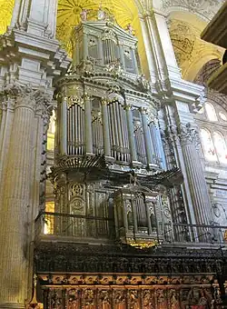 Beispiele:[22] Schlägl (Andreas Butz / Johann Christoph Egedacher, 1634/1708), Klosterneuburg (Johann Georg Freundt, 1642), Rheinau (Johann Christoph Leo, 1715),[61] Kloster St. Urban (Josef Bossart, 1721),[62] Zwettl (Johann Ignaz Egedacher, 1731), Fürstenfeld (Johann Georg Fux, 1736), Maihingen (Johann Martin Baumeister, 1737),[63] Herrenbach (Augsburg) (Georg Friedrich Schmahl, 1737),[64] Wien (Michaelerkirche) (Gottfried Sonnholz, 1742), Weingarten (Joseph Gabler, 1750), Bad Wimpfen (Johann Adam Ehrlich, 1752), Herzogenburg (Johann Hencke, 1752), Mediasch (Johannes Hahn, 1755), Maria Limbach (Johann Philipp Seuffert, 1756), Völs am Schlern (Ignaz Franz Wörle, 1760), Ottobeuren (Karl Joseph Riepp, 1766), Habsberg (Johann Conrad Funtsch, 1767), Benediktbeuern (Andreas Jäger (Orgelbauer), 1770), Maria Dreieichen (Anton Pfliegler, 1780), Rot an der Rot (Johann Nepomuk Holzhey, 1793), Bistritz (Johannes Prause, 1795),[65] Herz Jesu (Velburg); (Wilhelm Hepp, 1803).