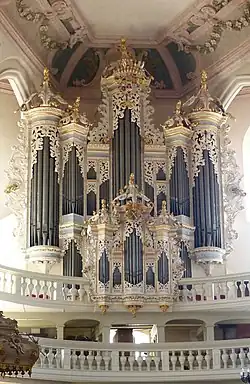 Vom Orgelbauer Andreas Ludewig Zuberbier aus Dessau finden sich noch Orgeln in Gossa (1781) und Krina (1796).[11] Der im thüringischen Roda wirkende Christian Friedrich (I.) Poppe hinterließ in Sachsen-Anhalt eine Orgel in Kayna (1780) und einen Prospekt in der Naumburger Marien-Magdalenen-Kirche (1783).