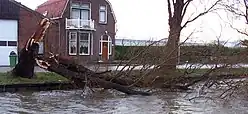 In den Niederlanden forderte der Sturm sieben Todesopfer.[52] Das nationale Krisenzentrum hatte am Donnerstag eine landesweite Unwetterwarnung herausgegeben und die Bevölkerung aufgefordert, nach Möglichkeit nicht ins Freie zu gehen. Auf dem Universitätsgelände der Universität von Utrecht stürzte ein Kran auf ein Gebäude. In Den Haag gingen aufgrund der hohen Windgeschwindigkeiten Schaufensterscheiben zu Bruch.[53] In Amsterdam musste der Hauptbahnhof wegen Schäden am Dach gesperrt werden.[30] Am Abend brach der Eisenbahnverkehr komplett zusammen.[54] Auch zahlreiche Autobahnen mussten wegen überschwemmter Fahrspuren und aufgrund umgestürzter LKW gesperrt werden. Der Fährverkehr zu den Inseln Terschelling und Vlieland wurde komplett eingestellt und konnte erst in der Nacht zu Freitag wieder aufgenommen werden.[55]