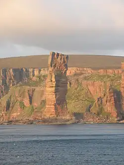 Bei den Gesteinen, aus denen die Inseln aufgebaut sind, handelt es sich im Wesentlichen um Sedimente aus dem Paläozoikum, die Middle Old Red Sand- & Flagstones, die im Devon gebildet wurden. Zu nahezu 100 Prozent sind die Gesteine der Orkney group und der Caithness group[37] zuzuordnen, feinkörnige bis mittelgrobe Sandsteine, die im Süß- und Brackwassermeer des Orcadian Basin abgelagert wurden.