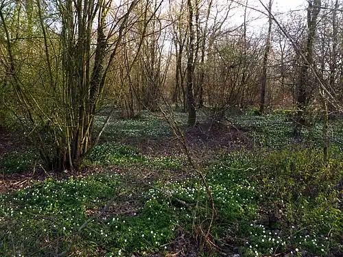 Der südliche Teil besteht fast zur Gänze aus einem früher bewirtschafteten Niederwald mit Stockausschlag und Wurzelaustrieben. Er gliedert sich in einen oberen Teil auf oberflächenversauerten Böden mit einem artenarmen Eichen-Hainbuchenwald und einen unteren aus artenreicherem Eichen-Hainbuchenwald auf einem Boden aus Feuersteinkreide und Vijlener-Kalken. Die Grenze zu den bewirtschafteten Feldern bildet ein dichter Buschsaum mit Resten eines Halbtrockenrasenes des Mesobromion-Verbandes. Dieser Wald wurde jahrelang nicht bewirtschaftet und ist dadurch fast undurchdringlich geworden. Mit seinen faulenden Stämmen und Stubben ist er ideal für die in diesem Biotop heimische Kleintierfauna. Nördlich liegt ein kleiner Kalksteinbruch, der zu einem Trichter erodiert ist. An seinen Rändern sind Schlehe, Weißdorn und andere typische Gehölze zu finden, im Inneren befinden sich ein Kalkhalbtrockenrasen sowie verkümmerte Winterlinden.