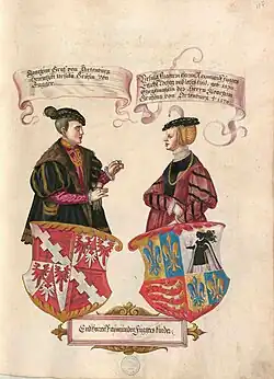 Gemehrtes Wappen der Graffen zu Ortenburg, Wappenbuch des churbayrischen Adels, 1560 -