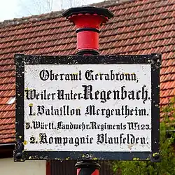 | Unter-Regenbach | Weiler | Gerabronn | Langenburg | Schwäbisch Hall | Ortsstock (1876)[5] | Ortsmitte | ![]() |