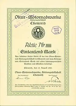 - ↑ Okur Kraftrad Prospekt 1920er Jahre Auf motor-lit-berlin, abgerufen am 1. Oktober 2022.