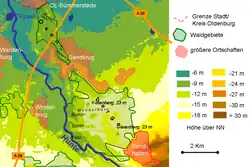 Die Erhebungen bilden in der naturräumlichen Haupteinheitengruppe Ostfriesisch-Oldenburgische Geest (Nr. 60), in der Haupteinheit Hunte-Leda-Moorniederung (600) und in der Untereinheit Südlicher und Östlicher Moorrand (600.1) den Naturraum Osenberge (600.14). Zu den Nachbarn gehören insbesondere der Naturraum Astruper Huntetal (600.13) im Westen, der Naturraum Huder und Oldenburger Moore (612.14) im Osten, der in der Haupteinheitengruppe Ems-Weser-Marsch (61) und in der Haupteinheit Wesermarschen (612) zur Untereinheit Jade-Weser-Becken (612.1) zählt, und die Untereinheit Dötlinger Huntetal (595.01) im Süden, der in der Haupteinheitengruppe Ems-Hunte-Geest (59) zur Haupteinheit Delmenhorster Geest (595) gehört.