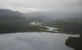 ![]() Die Osjornaja verlässt am hinteren Seeufer den Kurilensee | ||