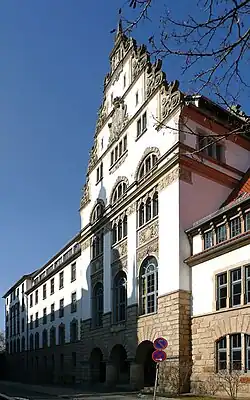 Die Oberbauleitung hatte der Baurat Franz Engelbrecht in Hannover, die Ausarbeitung und Bauleitung oblag Hermann Heise, zusätzliche Bauleiter waren Regierungsbaumeister Emil Goehrtz sowie Regierungsbaumeister Otto Heusgen.[10] - 1908–1909: Neubau für das evangelische Knaben-Alumnat „Paulinum“ in (Berlin-)Dahlem, Reichensteiner Weg 24/26 (verändert und umgenutzt; unter Denkmalschutz)[11][12]