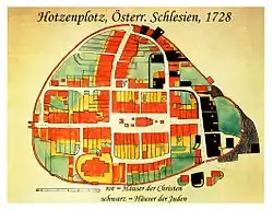 Als während der Hussitenzeit Juden aus Prag vertrieben wurden, erlaubte 1415 der Bischof von Olmütz jüdischen Familien, sich in Hotzenplotz anzusiedeln. Allmählich wuchs die jüdische Bevölkerung, ebenso ihr Anteil an der Gesamtbevölkerung der Stadt. Im Jahre 1616 gab es z. B. 135 jüdische Familien in 32 Häusern. (Zum Vergleich: Damals zählte Hotzenplotz 282 Häuser christlicher Familien.) Die jüdische Gemeinde errichtete 1808 eine Synagoge. Der jüdische Friedhof wurde im Gebiet der k. und k. Monarchie zum zweitgrößten nach dem in Prag. 1802 wurde als höchste Zahl jüdischer Einwohner 845 erreicht. In der Mitte des 19. Jahrhunderts verließen die meisten Juden aus wirtschaftlichen Gründen die Stadt.