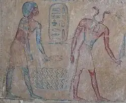- ↑ die Göttertriade Osiris – Horus – Isis