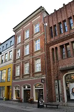 Der viergeschossige Backsteinbau wurde im Jahr 1872 errichtet. Das Erdgeschoss wurde im Laufe der Zeit durch den Einbau eines Ladens stark verändert. In den Obergeschossen ist die originale dreiachsige Fassade mit Gliederung erhalten, sie wird geprägt durch ein Raster von Lisene, die geschossübergreifend ausgeführt ist. Mäanderfriese schneiden die Lisene. Oberhalb der Segmentbogenfenster sind bemalte Putzspiegel ausgeführt.[1]