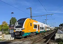 | Triebwagen | Insgesamt 86, davon 14 Regio-Shuttle RS1 6 Desiro Classic 16 KISS 7 Desiro ML 29 Desiro HC 8 Coradia Lint 54 6 Stadler GTW |