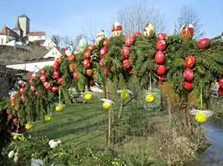 - ↑ a b c Geschichte der Osterbrunnen – Mit Liste der Osterbrunnenorte. Fränkische Schweiz, abgerufen am 8. April 2012.