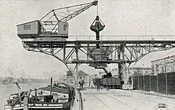 Löschung eines Kohlendampfers im Osthafen um 1914