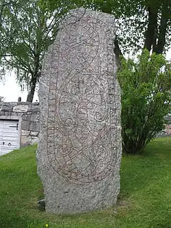 ↑Klaus Düwel: Runensteine. In: Reallexikon der Germanischen Altertumskunde, Bd. 25. de Gruyter, Berlin / New York 2003, S. 593 ff.