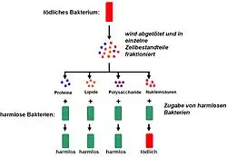 Dawson und Sia konnten diese Transformation in vitro durchführen und die transformierende Substanz in einem Reagenzglas bereitstellen. Alloway führte diese Transformation mit einer wässrigen Lösung eines Zellextrakts durch.