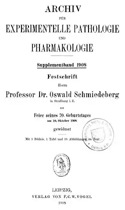 - ↑ a b c B. Naunyn: Oswald Schmiedeberg †. In: Archiv für experimentelle Pathologie und Pharmakologie 1921; 90:I-VII