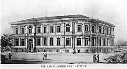 1883 erschien die erste Auflage von Schmiedebergs Grundriss der Arzneimittellehre, in späteren Auflagen Grundriss der Pharmakologie in Bezug auf Arzneimittellehre und Toxikologie.[15] In der Einleitung stellt Schmiedeberg sein Fach zwischen die Schwesterwissenschaften: