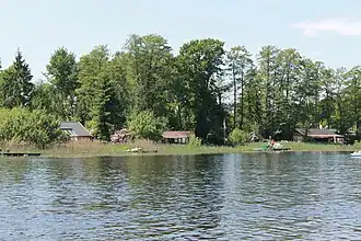Der See ist von einem schmalen Röhrichtgürtel umgeben, der von zahlreichen Steganlagen und Badestellen unterbrochen wird. In ihm dominiert das Schilfrohr (Phragmites australis). Daneben findet man die Gelbe Schwertlilie (Iris pseudacorus) und den Großen Schwaden (Glyceria maxima). Am Westufer befinden sich größere Schwimmblattbestände mit der Gelben Teichrose (Nuphar lutea) und der Weißen Seerose (Nymphaea alba). Früher siedelten in dem Gewässer einige seltene Pflanzen, die heute aber aufgrund der zunehmenden Eutrophierung und intensiven Erholungsnutzung völlig verschwunden sind, darunter Strandling (Littorella uniflora), Schmalblättriger Igelkolben (Sparganium affine), See-Brachsenkraut (Isoetes lacutris) und Schmalblättriges Wollgras (Eriophorum angustifolium).[9] Die letztgenannten Arten deuten darauf hin, dass das Gewässer früher wesentlich nährstoffärmer war als heute.