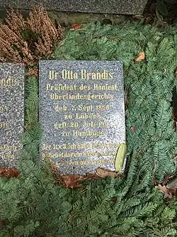 Otto Brandis verstarb 60-jährig und wurde in der Familiengrabstätte auf dem Friedhof Ohlsdorf im Planquadrat S 24 beigesetzt.