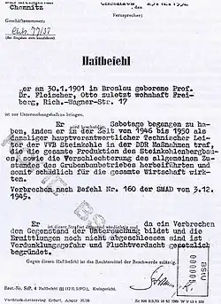 - ↑ Der Haftbefehl der Stasi-Dienststelle Freiberg ist auf den 22. Dezember 1952 datiert und wurde in den frühen Abendstunden ausgeführt; es folgte am Tag darauf ein zweiter Haftbefehl vom Gericht in Chemnitz.
