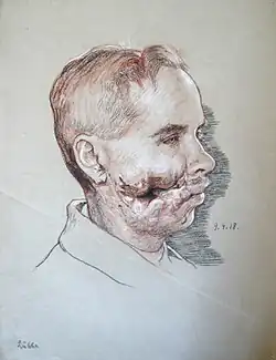 Während des Ersten Weltkriegs, stationiert in Düsseldorf, malte Otto Sohn-Rethel alle Facetten kriegsverwundeter Soldaten, die aus dem Lazarett entlassen wurden. Auf jedem Bild wurden, neben einer genauen Beschreibung der Verletzungsart, die Daten des Verwundeten eingetragen.