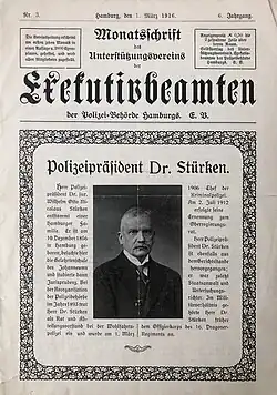 Als Sohn des Hamburger Kaufmanns Nicolas Stürken besuchte Stürken die Gelehrtenschule des Johanneums. Nach dem Abitur begann er an der Rheinischen Friedrich-Wilhelms-Universität Rechtswissenschaft zu studieren; eigentlich diente er aber als Einjährig-Freiwilliger beim Husaren-Regiment „König Wilhelm I.“ (1. Rheinisches) Nr. 7. 1878 wurde er im Corps Palatia Bonn recipiert.[1] Er wechselte an die Eberhard-Karls-Universität und wurde noch 1878 auch im Corps Suevia Tübingen aktiv.[1] Als Inaktiver ging er schließlich an die Georg-August-Universität Göttingen. Er wurde 1882 Referendar bei der Staatsanwaltschaft in Hamburg, 1886 Assessor. Nach Stationen als Landrichter und Untersuchungsrichter trat Stürken 1893 in die Polizeibehörde als Abteilungsvorstand bei der Wohlfahrtpolizei ein. 1906 wurde er Chef der Kriminalpolizei und schließlich 1916 Polizeipräsident. Unter Stürkens Leitung wurde 1918 der Januarstreik in Hamburg niedergeschlagen, ohne dass Streikforderungen erfüllt wurden.[2]