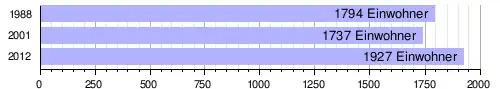 Im Hauptort lebten bei der Volkszählung 2012 1927 Einwohner in 257 Haushalten,[2] bei der Volkszählung 2001 1737 in 171 Haushalten[7] und bei der Volkszählung 1988 1794 in 209 Haushalten.[8]