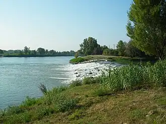 Mündung der Ouvèze (rechts) in einen Seitenarm der Rhone | ||