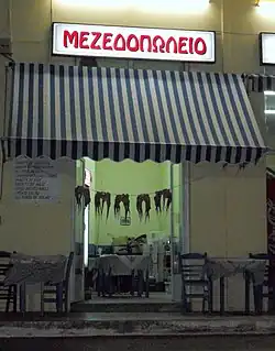 Man findet Ouzerien in fast allen Städten und Dörfern. Im Unterschied zum traditionellen Kafenio werden die Gerichte im Laden vor- oder zubereitet. Dazu gehören auch Fleisch und Fischgerichte, die im Kafenio nicht angeboten werden. Gleichbedeutende Bezeichnungen sind Tsipouradiko, Mezedopolio oder Ouzopolio.