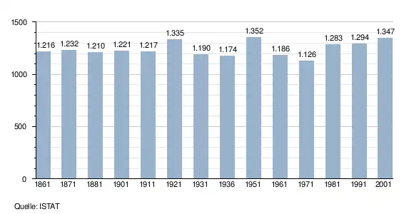 - ↑ Bilancio demografico e popolazione residente per sesso al 31 dicembre 2024. ISTAT. (Bevölkerungsstatistiken des Istituto Nazionale di Statistica, Stand 31. Dezember 2024).