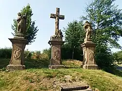 - Statuengruppe des Gekreuzigten, hl. Josef und hl. Johannes von Nepomuk, an der Straße nach Lažany