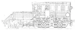 Das dreiachsige Fahrwerk bestand aus einem vorderen Laufradsatz mit Innenlager, der um 15 mm seitlich verschiebbar war, und den beiden starr im Rahmen gelagerten Treibachsen mit Außenlager. Im hinteren Teil der Lokomotive befand sich das Führerhaus mit dem Fahrschalter, dem Führerbremsventil und der Handbremse. In den flachen Vorbauten befanden sich der Luftpresser, ein Anfahrwiderstand und die Bleibatterien für die Steuerstromversorgung, den Betrieb des Luftpressers und Erregerwicklungen der Fahrmotoren. Die Batterien auf der Lokomotiven bestanden aus 18 Zellen, was eine Nennspannung von 36 V ergab. Sie konnten auch für die Versorgung der Fahrmotoren verwendet werden, ließen aber nur sehr kleine Geschwindigkeiten im Bereich von 3 bis 6 km/h zu. Der Fahrstrom wurde normalerweise von den zwei Batteriesätzen im Gepäckwagen geliefert, der mit vier Kabeln an die Lokomotive angeschlossen war. Jede Batterie bestand aus 96 Zellen und lieferte eine Spannung von knapp 200 V.[5] Die zweipoligen Achsmotoren[6] waren dauernd in Reihe geschaltet, um zu verhindern, dass der Batteriestrom zu groß wird.[7]