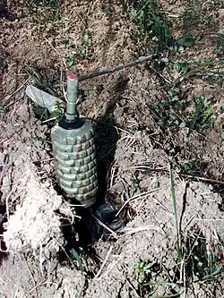 Nach Einsetzen des Holzpflockes in den Boden wird darauf der Sprengkörper und darüber der Minenkörper aufgesetzt. Der Minenkörper dient zugleich als Splittermantel. Anschließend wird der Zünder auf den Minenkörper aufgeschraubt und der Auslösedraht (Tripwire) ausgelegt. Der Auslösedraht ist dabei am Sicherungssplint des Zünders befestigt, dieser hält einen vorgespannten Schlagbolzen in rückwärtiger Position. Der Auslösedraht kann dabei straff gespannt (Spanndraht) oder lose am Boden ausgelegt (Stolperdraht) sein.