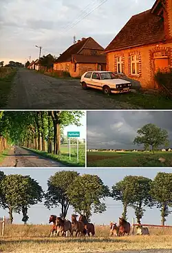 Das Bauerndorf liegt in Hinterpommern an einer Nebenstraße, die Sycewice (Zitzewitz) an der polnischen Landesstraße 6[2] (ehemalige deutsche Reichsstraße 2, heute auch Europastraße 28) mit Pieszcz (Peest) und Tyń (Thyn) verbindet. Die Entfernung zur Kreisstadt Sławno (Schlawe) beträgt 12 Kilometer, und bis nach Słupsk (Stolp) sind es 14 Kilometer. Bahnstation ist Sycewice an der Staatsbahnlinie 202 Danzig – Stargard (Pommern).