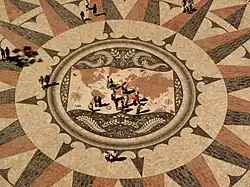 Auf dem Boden vor dem Eingang befindet sich eine Windrose aus Mosaiksteinen. Die Windrose hat einen Durchmesser von 50 Metern und war ein Geschenk der Republik Südafrika. Eine Weltkarte im Zentrum des Mosaiks zeigt die Routen der portugiesischen Entdecker im 15. und 16. Jahrhundert.