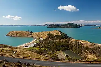 ![]() im Vordergrund die Landzunge zum Whakaiwhara Point im Vordergrund die Landzunge zum Whakaiwhara Point | ||
