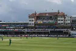 Die Champions Trophy 2017 in England begann für Pakistan mit einer Niederlage von 124 Runs gegen den Rivalen Indien. Im Verlauf der Gruppenphase verbesserte Pakistan sein offensives Bowling und gewann das Spiel gegen Südafrika mit 19 Runs und das entscheidende Spiel gegen Sri Lanka mit drei Wickets. Dies setzte sich im Halbfinale gegen den Gastgeber und Favoriten England fort, als Hasan Ali drei Wickets erzielte und für Pakistan das erste Finale einer Champions Trophy sicherte, in dem es wieder auf Indien traf.[74] Das Finale im ausverkauften The Oval begann Indien als Schlagmannschaft. Pakistans Batting Order zog Indiens Entscheidung in Zweifel, als der Opening Batter Fakhar Zaman sein erstes ODI-Century (114 Runs aus 106 Bällen) erzielte, und wichtige Beiträge von Azhar Ali (59) und Mohammad Hafeez (57*) stellten das pakistanische Ergebnis auf 338 Runs. Indien verlor seine top order zügig, als Mohammad Amir die wichtigen Wickets von Rohit Sharma, Shikhar Dhawan und Virat Kohli nahm. Indien leistete Widerstand mit Hardik Pandya, der zügige 76 Runs erzielte. Hasan Ali, Pakistans aufsteigender Stern in dem Turnier, erzielte das letzte Wicket mit 3–19, was Indien auf 180 Runs begrenzte und für Pakistan die erste Champions Trophy einbrachte. Das Ergebnis war das bisher höchste in einem ICC-Turnierfinale. Hasan Ali wurde als „Spieler des Turniers“ ausgezeichnet.[75] Nach dem Sieg kletterte Pakistan von den achten auf den sechsten Platz der ODI-Rangliste.