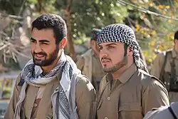 In Iran wurde sie ab der Iranischen Revolution in den 70ern als Ausdruck der Solidarität mit den Palästinensern und des Widerstands gegen westliche Einflussnahme getragen.[72] Danach trugen sie sowohl Anhänger des reformorientierten Lagers als Ausdruck des Widerstands gegen politische Unterdrückung – hier des Öfteren in grün mit schiitischer Symbolik – als auch Vertreter des Establishments wie Mahmud Ahmadineschad, Ali Chamenei, die regierungstreuen Basidsch-Milizen und die Islamischen Revolutionsgarde – Letztere oft in Form der staatlich eingeführten Chafiye, einer iranischen Variante der Kufiya.[73]