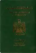 Auf der zweiten Seite (Umschlag innen) ist die Rechtsgrundlage für den Pass in arabischer und englischer Sprache angegeben: