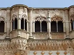 Der Stil des Palastes kann als typisch spanisch (oder iberisch) gelten. Obwohl ein Teil der Dekoration, der Struktur der Balkone oder Portale in der Tradition der flämischen Gotik stehen, sind viele andere dekorative Elemente, wie die Anordnung der Öffnungen in der Fassade, einschließlich des ornamentalen Themas der hervorstehenden „Spitzen“ (Diamantquader), maurisches Erbe. Er ist ein exquisites Beispiel für die Mudéjar-Kunst, übertrifft beide Stile und geht in der Handschrift der isabellinischen oder hispano-flämischen Gotik auf, die, wie oben erwähnt, in der zweiten Hälfte des 16. Jahrhunderts mit Spuren der Renaissance verändert wurde.