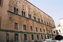 Der Palast wurde 1330 von Matteo Sclafani in Auftrag gegeben und laut einer nicht mehr erhaltenen Tafel an der Ostfassade noch im selben Jahr fertiggestellt, was jedoch zweifelhaft ist. Sclafani wollte damit seinen Schwager Manfredi Chiaramonte demütigen, der zur Errichtung seines Palazzo Chiaramonte mehrere Jahrzehnte brauchte. Ab 1435 diente der Palast als Bürgerspital, ab 1852 als Kaserne. Heute befindet sich darin die Militärkommandantur.